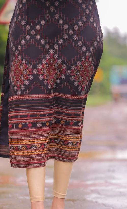 Aru- Garnet Weave Muslin Kurti with 3/4 Sleeves – Casual Chic