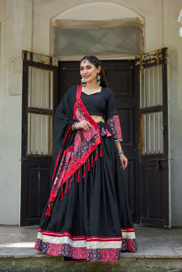 Crowne- Celebrate the vibrant spirit of Navratri with this elegant and graceful white pure cotton chaniya choli set